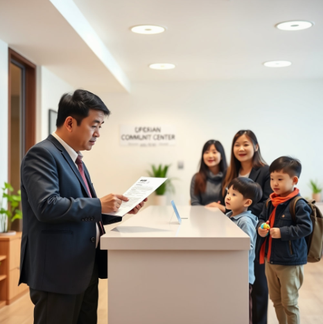 : 아동 주민등록상 주소지 관할 주민센터를 방문합니다. - 신청서 작성